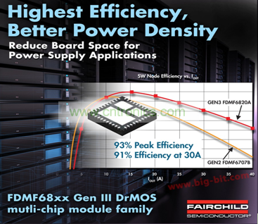 當能效標準逐漸成為電子產(chǎn)品新的緊箍咒,各大電源半導體廠商不得不面對電源管理技術(shù)的全新挑戰(zhàn)。飛兆半導體 FDMF68xx Gen III DrMOS多芯片模塊(MCM)系列經(jīng)設計能夠降低輸出感量和減少輸出電容器數(shù)目,與普通分立器件解決方案相比,該系列能夠節(jié)省多達50%的線路板空間,并提高效率,以期滿足新能源標準要求。使用飛兆半導體的高性能PowerTrench® MOSFET技術(shù),F(xiàn)DMF68xx系列能夠顯著減少開關振鈴(switch ringing),省去大多數(shù)降壓轉(zhuǎn)換器應用中使用的緩沖器電路。FDMF68xx系列配合針對刀片式服務器、高性能筆記本電腦、游戲主機和負載點(point-of-load)模塊的新能源標準和系統(tǒng)規(guī)范,正在推動業(yè)界對更高效率、更大電流、更高開關頻率以及更大功率密度的需求。