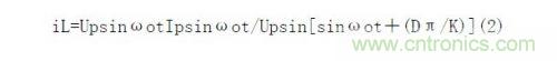 在功率放大的功率因數(shù)校正中基本上是采用升壓式變換電路,而升壓電感是串在輸入回路中,電感電流等于輸入電流,只要控制電感電流就可以達(dá)到控制輸入電流。功率開關(guān)器件的切換速率ωS遠(yuǎn)大于工頻ωo(ωS=Kωo,K 1);L值大得足以使電感中的電流連續(xù),當(dāng)功率器件開關(guān)切換脈沖占空比的變化遵循正弦規(guī)律時(shí),即所謂正弦波脈寬調(diào)制(SPWM)時(shí)電感中流過的電流為:
