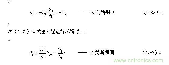 (1-83)式中右邊的第一項(xiàng)就是流過(guò)變壓器初級(jí)線圈N1繞組中的最大勵(lì)磁電流被折算到次級(jí)線圈N3繞組中的電流(最大值),第二項(xiàng)是i3中隨著時(shí)間變化的分量。其中n為變壓器次級(jí)線圈N3與初級(jí)線圈N1的變壓比,或匝數(shù)比。