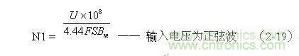 (2-18)式雖然是用于計算雙激式開關變壓器初級線圈N1繞組匝數(shù)的公式,但只需把式中的某個別參數(shù)稍微進行變換或修改,同樣可以用于計算其它波形電源變壓器初級線圈匝數(shù)的公式。
