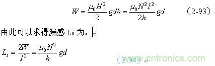 如果我們拿(2-94)式與(2-62)式或(2-89)式進(jìn)行對(duì)比,可以看出,線圈漏感與線圈的電感是沒有本質(zhì)區(qū)別的,只是磁路和磁感應(yīng)強(qiáng)度以及介質(zhì)導(dǎo)磁率等參數(shù)需要根據(jù)實(shí)際情況來(lái)決定。