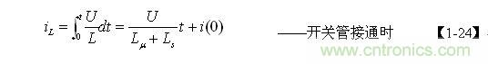 假設(shè)變壓器初級(jí)線圈的等效電感為L(zhǎng),L=Lu+Ls ,當(dāng)電源開(kāi)關(guān)管Q1接通時(shí),流過(guò)變壓器初級(jí)線圈的電流為: