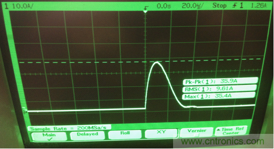 上圖參數(shù)如下: Inrush Current : Ipeak=35.9A;Duration : t≈30us