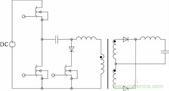 不對稱脈沖PWM 控制,其下管下降沿與上管的前沿互補(bǔ),上管可實(shí)現(xiàn)ZVS。只要設(shè)計(jì)的占空比較小,無需其它措施即使工作在較高頻率下開關(guān)損耗也很小。變壓器直流偏磁,除占空比端點(diǎn)外,偏磁電流小于不對稱半橋。寬范圍適用性優(yōu)于傳統(tǒng)的不對稱半橋。低壓大電流的應(yīng)用場合有一定的優(yōu)勢。