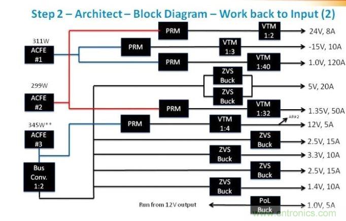 圖5:在這里,我們看到現(xiàn)在引入了驅(qū)動電壓軌的ACFE。這里非常重要的是判斷每路電壓軌上的負載,并確保負載均操作于接近具有合適安全裕度的最大值。
