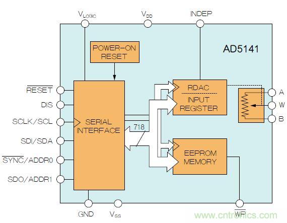 ADI公司的AD5141 digiPOT克服了其他數(shù)字電位計(jì)的某些問題。它提供: