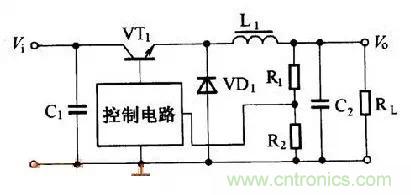 DC-DC就是直流-直流變換,一般有升壓(BOOST)、降壓(BUCK型)兩種。降壓式DC/DC變換器的輸出電流較大,多為數百毫安至幾安,因此適用于輸出電流較大的場合。降壓式DC/DC變換器基本工作原理電路如下圖所示。VT1為開關管,當VT1導通時,輸入電壓Vi通過電感L1向負載RL供電,與此同時也向電容C2充電。在這個過程中,電容C2及電感L1中儲存能量。當VT1截止時,由儲存在電感L1中的能量繼續(xù)向RL供電,當輸出電壓要下降時,電容C2中的能量也向RL放電,維持輸出電壓不變。二極管VD1為續(xù)流二極管,以便構成電路回路。輸出的電壓Vo經R1和R2組成的分壓器分壓,把輸出電壓的信號反饋至控制電路,由控制電路來控制開關管的導通及截止時間,使輸出電壓保持不變。