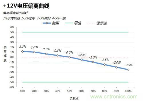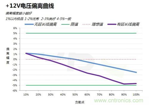 這是一款入門級電源的整體表現(xiàn),效能就是通牌水準(zhǔn),而電源電壓偏離也是處于一個比較好的水平,下面我們接上延長線去測試。