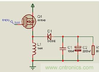 占空比為D的PWM波控制開(kāi)關(guān)管Q1,從而達(dá)到這樣的一個(gè)效果,交替導(dǎo)通或截止,再經(jīng)L和C濾波器在負(fù)載R上得到穩(wěn)定直流輸出電壓Uo。本電路屬于降壓型電路,題目要求的30--36V 的輸出電壓是實(shí)現(xiàn)不了的。