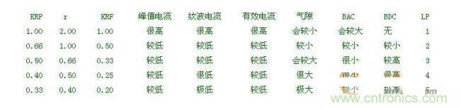 KRP的意義:只要原邊電感電流處于連續(xù)狀態(tài),都稱之為CCM模式。而深度CCM模式(較小紋波電流)與淺度CCM模式(較大紋波電流)相比較,電感量相差好幾倍,而淺度CCM模式與BCM、DCM模式的各種性能、特點(diǎn)可能更為相似。顯然需要一個合適的參數(shù)來描述所有電感電流的工作狀態(tài)。通過設(shè)置KRP值,可以把變壓器的電感電流狀態(tài)與磁性材料、環(huán)路特性等緊密聯(lián)系起來。我們也可以更加合理的評估產(chǎn)品設(shè)計方案,例如: