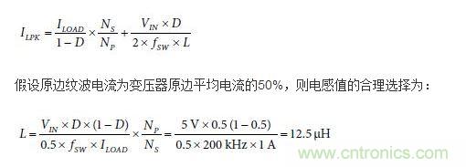 變壓器選擇很重要,因為它決定了原邊電感的電流紋波。