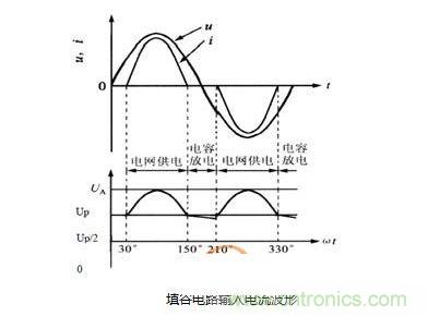 LN系列采用填谷電路進行設(shè)計,利用高壓陶瓷電容完美替代鋁電解電容,增加了整流管的導(dǎo)通角,使輸入電流波形從尖峰脈沖變得更接近正弦波,從而大幅度提高電源的功率因素(如表1所示),提高電源的轉(zhuǎn)換效率,更加利于環(huán)保節(jié)能,顯著降低總諧波失真。如圖所示: