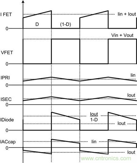 圖2:連續(xù)導(dǎo)通模式(CCM)SEPIC的關(guān)鍵波形