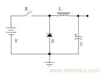開關(guān)電源是一種比較新型的電源。它具有效率高,重量輕,可升、降壓,輸出功率大等優(yōu)點(diǎn)。但是由于電路工作在開關(guān)狀態(tài),所以噪聲比較大。 通過(guò)下圖,我們來(lái)簡(jiǎn)單的說(shuō)說(shuō)降壓型開關(guān)電源的工作原理。如圖所示,電路由開關(guān)K(實(shí)際電路中為三極管或者場(chǎng)效應(yīng)管),續(xù)流二極管D,儲(chǔ)能電感L,濾波電容C等構(gòu)成。當(dāng)開關(guān)閉合時(shí),電源通過(guò)開關(guān)K、電感L給負(fù)載供電,并將部分電能儲(chǔ)存在電感L以及電容C中。由于電感L的自感,在開關(guān)接通后,電流增大得比較緩慢,即輸出不能立刻達(dá)到電源電壓值。一定時(shí)間后,開關(guān)斷開,由于電感L的自感作用(可以比較形象的認(rèn)為電感中的電流有慣性作用),將保持電路中的電流不變,即從左往右繼續(xù)流。這電流流過(guò)負(fù)載,從地線返回,流到續(xù)流二極管D的正極,經(jīng)過(guò)二極管D,返回電感L的左端,從而形成了一個(gè)回路。通過(guò)控制開關(guān)閉合跟斷開的時(shí)間(即PWM——脈沖寬度調(diào)制),就可以控制輸出電壓。如果通過(guò)檢測(cè)輸出電壓來(lái)控制開、關(guān)的時(shí)間,以保持輸出電壓不變,這就實(shí)現(xiàn)了穩(wěn)壓的目的。