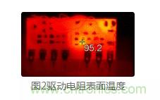 有時,電路參數(shù)和性能看似正常,但實(shí)際上隱藏很大的問題。如圖 2所示,某電路基本性能沒有問題,但在常溫下,用紅外熱成像儀一測,不得了了,MOS管的驅(qū)動電阻表面溫度居然達(dá)到95.2℃。長期工作或高溫環(huán)境下,極易出現(xiàn)電阻燒壞、模塊損壞的問題??梢姡邪l(fā)過程中使用熱成像儀測試元器件的溫度尤其重要,可及時發(fā)現(xiàn)并定位問題點(diǎn)。通過調(diào)整電路參數(shù),降低電阻的歐姆熱損耗,且將電阻封裝由0603改成0805,大大降低了表面溫度。