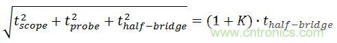 為確保儀器和探頭不會對測量造成重大影響,我們可以假設,能夠用和方根法把探頭、示波器和半橋的上升時間加起來。盡管這種方法并不總是正確,但我們在最初估計中可假設這一關系成立。