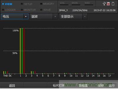 逆變器在將直流轉(zhuǎn)換成交流輸出之后,交流的電能質(zhì)量是檢測逆變器的一個(gè)很重要的指標(biāo)。輸出端的交流如果存在電能質(zhì)量問題,不僅僅是影響逆變器使用效率,減少逆變器使用壽命,更有可能給使用者帶來生命財(cái)產(chǎn)的安全隱患。例如,由逆變器輸出的交流電往往含有諧波,下圖為E6500對交流的諧波檢測。