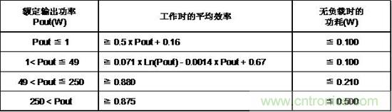 表1.DOE CEC 6級(jí)外部電源能效標(biāo)準(zhǔn)AC/DC電源(輸出電壓≧ 6V)