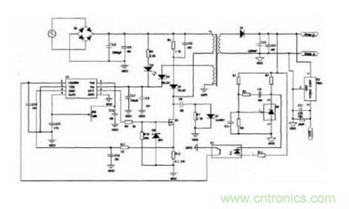 開關(guān)電源電路控制芯片采用UC3842,UC3842是目前比較理想的新型的脈寬調(diào)制器。由該集成電路構(gòu)成的開關(guān)穩(wěn)壓電源與電壓控制型脈寬調(diào)制開關(guān)穩(wěn)壓電源相比具有以下特點:1)微調(diào)的振蕩器放電電流,可精確控制占空比;2)電流模式工作到500kHz;3)自動前饋補償;4)鎖存脈寬調(diào)制,可逐周限流;5)內(nèi)部微調(diào)的參考電壓,帶欠壓鎖定;6)大電流圖騰柱輸出;7)欠壓鎖定,帶滯后;8)低啟動和工作電流。