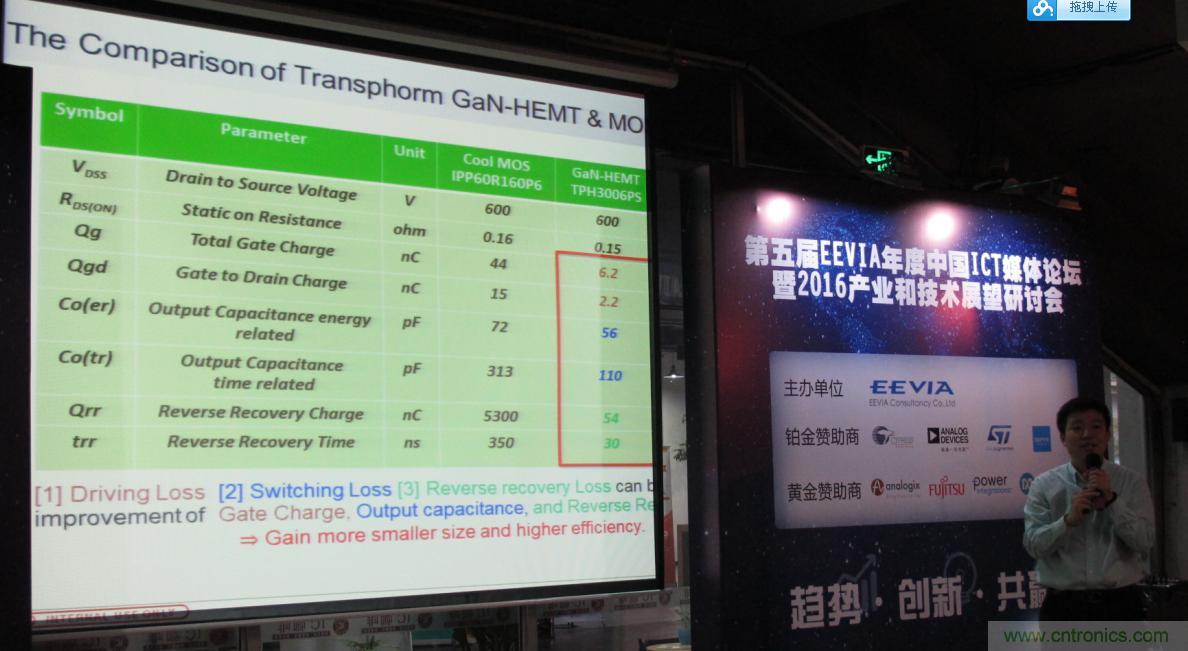 【導(dǎo)讀】氮化鎵技術(shù)擁有低功耗、小尺寸等特性設(shè)計上的獨(dú)特優(yōu)勢,其優(yōu)勢以及成熟規(guī)?;a(chǎn)能力使其近年來在功率器件市場大受歡迎。在前不久舉辦的EEVIA第五屆ICT技術(shù)趨勢論壇上,這個主題受到國內(nèi)媒體的集體“圍觀”。