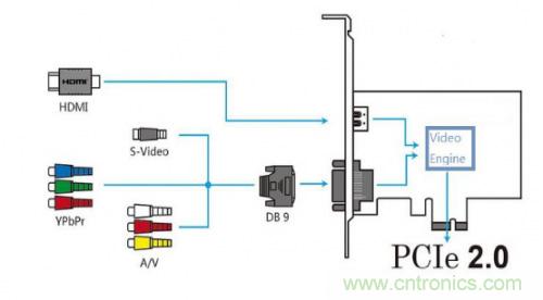 圖一是目前視頻采集卡非常主流的硬件架構(gòu),Vedio Engine包括視頻編解碼器和FPGA,協(xié)議以及算法都由FPGA來(lái)實(shí)現(xiàn),后面通過(guò)FPGA的Serdes接口送出到電腦,采用X4 PCIE2.0總線(xiàn)協(xié)議。世強(qiáng)市場(chǎng)經(jīng)理表示:PCIE總線(xiàn)發(fā)展到現(xiàn)在經(jīng)歷了3代,分別是GEN1 2.5GT/S, GEN2 5GT/S, GEN3 8GT/S,如果設(shè)置成X4,GEN2就可以滿(mǎn)足20GT/S的帶寬,基本可以滿(mǎn)足目前主流高清帶寬需求,所以主流的視頻采集卡都采用PCIE2.0。