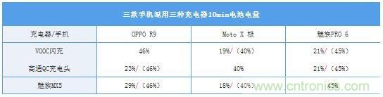 測試手機:OPPO R9、Moto X 極、魅族PRO 6,充電頭:VOOC閃充頭、高通官方QC充電頭、魅族MX5充電頭(UP1220)。其中(OPPO R9應搭配VOOC閃充頭使用:VOOC閃充協(xié)議);(Moto X 極應搭配高通官方QC充電頭使用:QC2.0快充協(xié)議);(魅族PRO 6應搭配MX5充電頭使用:聯發(fā)科PEP快充協(xié)議)。