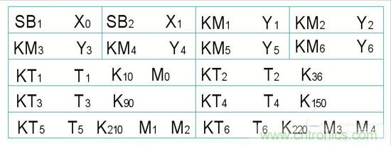圖3中:X0、X1為輸入繼電器;Y1、Y2、Y3、Y4、Y5、Y6為輸出繼電器;T1、T2、T3、T4為通電延時時間繼電器;T5、T6為斷電延時時間繼電器;M0、M1、M2、M3、M4為中間繼電器。