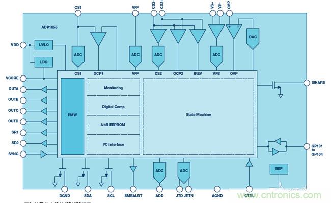 圖2. 基于狀態(tài)機(jī)的ADP1055框圖