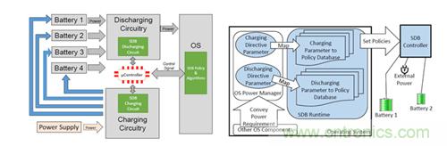 傳統(tǒng)的BMS肯定是拒絕的,但是如果是SDB(software defined battery)就不一定了。傳統(tǒng)的BMS一根充電線進來,給所有的電池充電/記錄/截至,然后再輸出。如果電芯一致性較差,上邊所描述的那些問題就會一一發(fā)生。再進一步,如果我們腦洞再開大一點,我在我的電池包里安裝上兩種電池,一種用于應(yīng)對低速巡航時的低倍率放電工況,另一種用于應(yīng)對高速急停時的高倍率放電工況。不同的電芯體系具有不同的特點,常考慮的能量密度/功率密度/成本/壽命/柔性等指標(biāo)也是相互沖突,如果需要在同一模組中使用不同體系電芯,搭配出一個綜合性能突出的產(chǎn)品,傳統(tǒng)的BMS就比較困難了。微軟覺得,這個可以這樣做:給每一個電池都加上一個充電放電管理微裝置(smart switching circuitry),收集每個電池的充放電電壓/電流/電阻,實現(xiàn)智能分流調(diào)配,使每個電芯的充放電情況接近于單體電芯,最大化電芯的使用價值。這種電芯管理模式的主要難點在于收集到這些數(shù)據(jù)之后的分析與電流調(diào)配,微軟為之開發(fā)了一個比較復(fù)雜的算法,并將使用這種電池管理模式的電池包為Software defined battery。