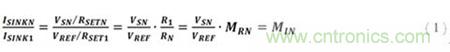 最終MOSFET(金氧半場效晶體管)源電壓VS以及RSET電阻決定著各柱上的灌電流(sink current);通過去除來自外部電流沉柱的反饋(即所有N》1),已失去對VSN的直接控制。因此,RSETN必須精心選擇以生成預(yù)期的任意第N個柱的灌電流,即ISINKN。仔細(xì)觀察上面的圖1,很容易得出定義偏置網(wǎng)絡(luò)第N個柱電流與第1個柱電流的比值的等式︰