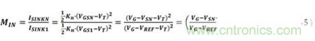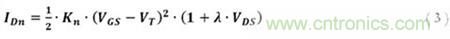那么該偏置網(wǎng)絡(luò)第N個柱的MOSFET源電壓是什么,VSN?考慮到工作在飽和區(qū)的NMOS漏極電流等式是: