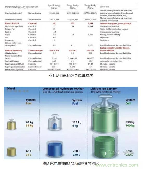 從下圖(圖1 汽油與鋰電池能量密度的對比)來看,鋰離子電池的能量密度和體積能量密度確實(shí)比較低。開安全環(huán)保的電動車的人就回過頭來指著搞電池的說,咋不像摩爾定律那樣,18個月就把電池能量密度翻個番,鋰電池不行,咱就換個其他的,誰行誰上。這還真不能那么急,咱來看看這些個能進(jìn)行充放電的電池都啥水平?再打開地圖找一找,看看是不是有啥錯過的寶貝,看看是不是那么容易,鋰電池是不是能達(dá)到燃油車的能量密度水平。
