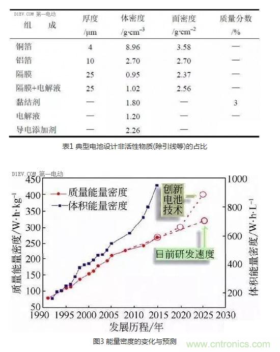 電池的能量密度基本由電池的正負(fù)極決定的,但光是正負(fù)極活性材料也不能保證電池能發(fā)上電,得有很多非活性物質(zhì),比如導(dǎo)電輔助劑、活性粉末之間的粘結(jié)劑、隔離膜、陰陽極的箔材、絕緣固定的膠紙、外邊鋁塑膜殼子或者鋼鋁殼等等(表1 典型電池設(shè)計(jì)非活性物質(zhì)的占比)。我們的媒體,總喜歡搞大新聞,有意無意的忽略這部分物質(zhì)的含量,得出的能量密度老能高到天上去,與事實(shí)相差較大,誤導(dǎo)無辜吃瓜群眾。其實(shí),這部分相當(dāng)重要,就拿過去十幾年的技術(shù)進(jìn)步來說,我們電池的能量密度提升主要就是靠著活性物質(zhì)占比的提升來實(shí)現(xiàn)的。