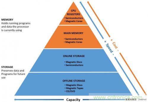 不同于存儲器的是,儲存裝置還可以進一步分類為線上或離線。圖1顯示存儲器與儲存的主要特性。