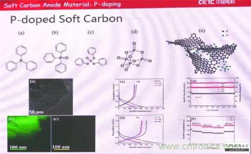 鈉離子電池和鋰離子電池的反應(yīng)機(jī)理相近,正極材料除了磷酸鹽或氟化磷酸鹽以外,還可以用鎳錳層狀過渡金屬氧化物。在負(fù)極材料方面可選擇碳類、合金和化合物。在三大類負(fù)極材料中,我們還是選擇最便宜的碳材料。我們對于負(fù)極碳材料又進(jìn)行了軟碳、硬碳和石墨烯三個(gè)分類的研究。