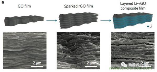 金屬鋰的另一大問題就是體積變化大,導致界面波動大,容易破壞界面結構,目前比較好的解決辦法主要有氧化石墨烯載體(如下圖所示),誘導沉積等方法,利用載體內(nèi)部的空間儲存金屬鋰,從而最大限度的減少在充放電過程中電極的體積變化「1」。