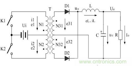 它的兩個(gè)開關(guān)器件有一個(gè)公共接地端,相對(duì)于半橋式或全橋式開關(guān)電源來說,驅(qū)動(dòng)電路要簡(jiǎn)單很多,這也是一個(gè)優(yōu)點(diǎn)。
