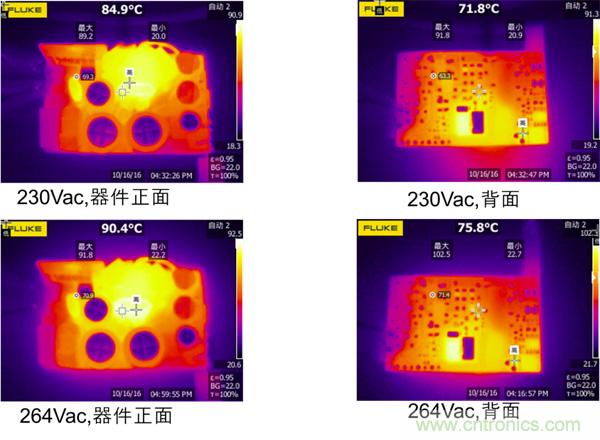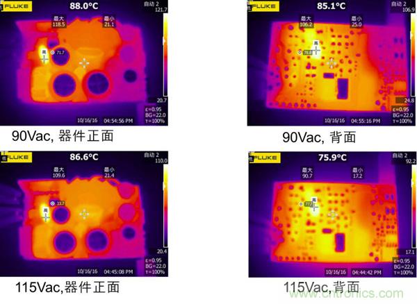 該方案在230 Vac、滿載條件下的開關(guān)頻率高達(dá)約130 KHz。