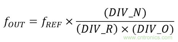 圖 1 為高性能時鐘設(shè)備的基本 PLL 架構(gòu)。該設(shè)計使用比例因子為 PLL 輸出端口提供時鐘合成。最終輸出頻率的基本公式為: