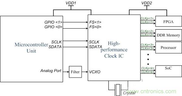 圖2.微控制器 - 高性能時鐘接口電路