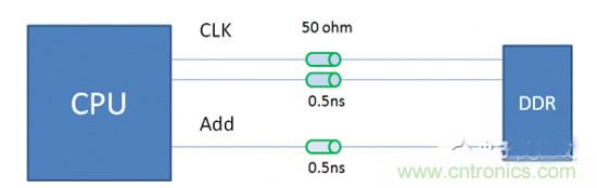 我們來回顧一下,DDR布線,線長匹配的基本原則是:地址,控制/命令信號與時鐘做等長。數(shù)據(jù)信號與DQS做等長。為啥要做等長?大家會說是要讓同組信號同時到達接收端,好讓接收芯片能夠同時處理這些信號。那么,時鐘信號和地址同時到達接收端,波形的對應關(guān)系是什么樣的呢?我們通過仿真來看一下具體波形。