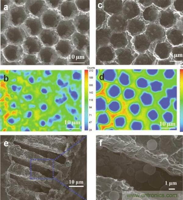 圖3.鋰沉積在多孔銅集流體的EPMA圖及SEM斷面圖