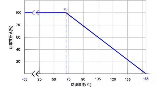 而最大工作電壓是在額定功率下,該電阻可以承受的最大電壓。但是要注意!看下面這個圖??梢钥闯鲱~定功率是在最高環(huán)境溫度70度的條件下標注的(不同廠家,系列可能有微小區(qū)別,在設(shè)計之初和問題查找的時候應(yīng)該核實清楚。)