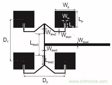 圖7:天線版圖。天線尺寸可以在前述參考文獻中找到。