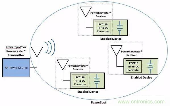 圖8:Powercast公司的無線再充電解決方案。