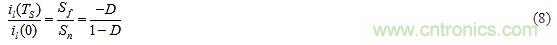 (a)il(TS)的極性與il(0)的極性相反; (b)對于D < 0.5,在足夠的周期數(shù)之后,其幅值將減小直至消失;但對于D>0.5,將趨于從一個周期增加到下一個周期,導(dǎo)致前述的亞諧波不穩(wěn)定。