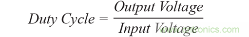 開關(guān)導(dǎo)通時)和斷開時間(當(dāng)主開關(guān)斷開時)之間的關(guān)系。降壓轉(zhuǎn)換器的占空比由以下公式定義: