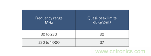 圖 3:CISPR 22 標(biāo)準(zhǔn) B 類輻射 EMI 規(guī)范。