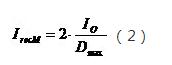 在大多數(shù)情況下,反激式開關(guān)電源的輸出整流器的最大導(dǎo)通占空比約為0.5。這樣,流過輸出整流器的電流峰值與輸出平均值電流之間的關(guān)系為: