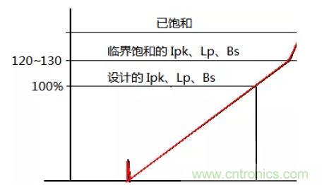 優(yōu)化方向是Bs值最優(yōu)化,約束條件是磁芯品質(zhì),可按 Bs(或原邊電感量 Lp)擴(kuò)大20%~30%余量后 Ipk 波形可見臨界飽和跡象為判據(jù)確定Bs取值。更高的Bs取值,對(duì)應(yīng)更小的氣隙、更小的漏感,更小的尖峰電壓、可能更高的整機(jī)效率。但太高的Bs取值會(huì)使上述余量更小、磁芯的品質(zhì)控制困難、成品率降低。